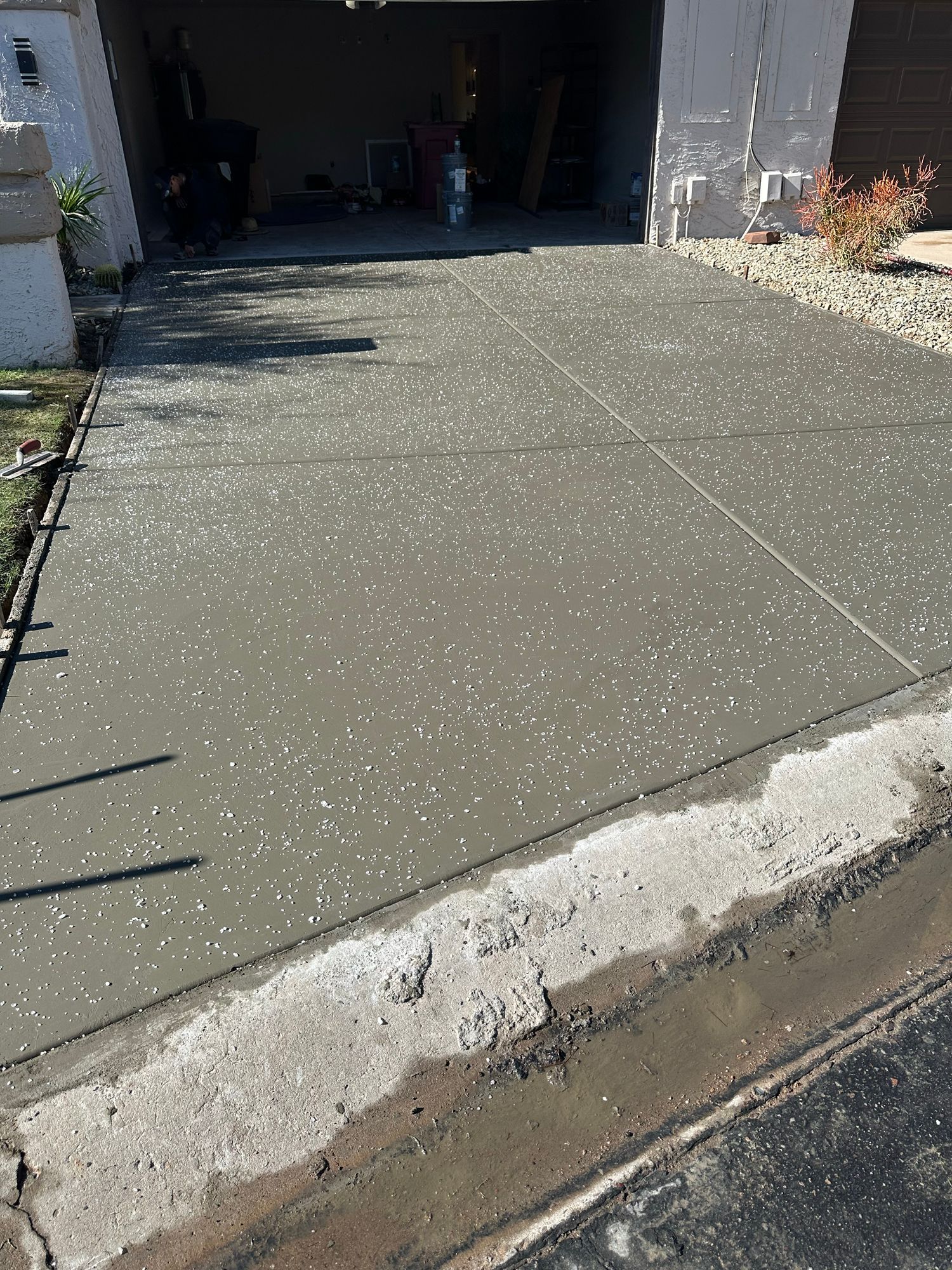 After the pour, the surface is kept moist for several days to allow the concrete to cure properly. This curing period is critical in Arizona's dry climate, where rapid evaporation can cause surface cracking. You'll see the slab harden over the first 24 hours, but full strength develops over about a month. Once cured, the surface is firm, level, and ready for foot traffic or furniture placement. The texture depends on the finish applied during installation, from smooth troweled surfaces to broom finishes that add slip resistance.